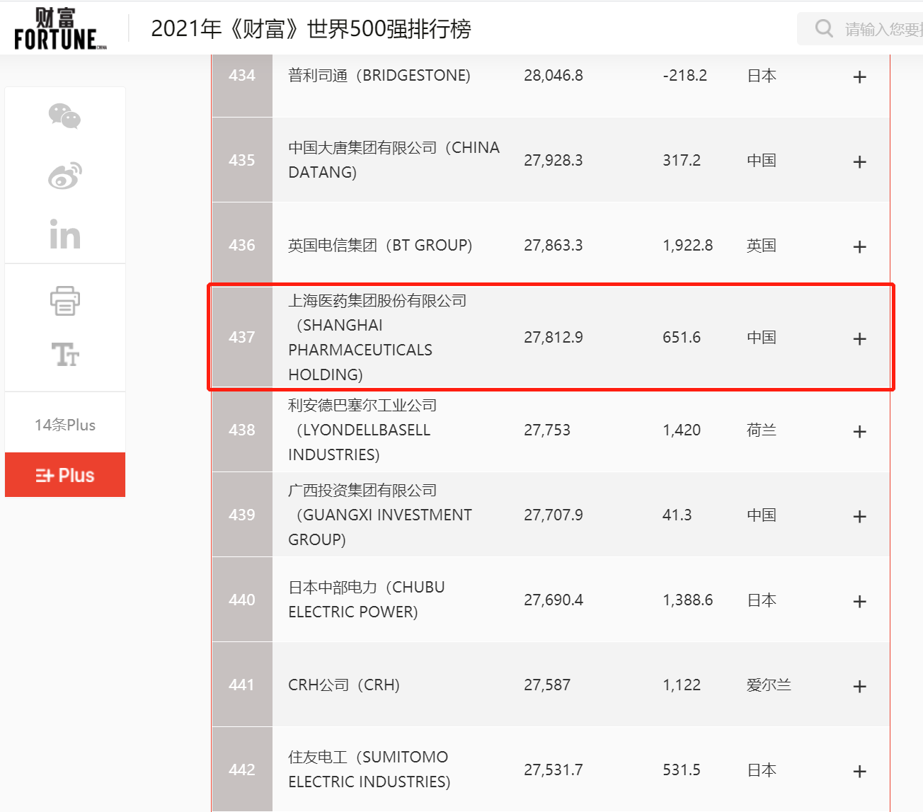 2021年8月2日,《財富》雜志正式發(fā)布“2021年《財富》世界500強(qiáng)排行榜單”,上海醫(yī)藥集團(tuán)股份有限公司(601607.SH,02607.HK,以下簡稱“上海醫(yī)藥”)再次上榜,位列第437位。這也是繼2020年首次入選后,上海醫(yī)藥再度憑借自身實(shí)力強(qiáng)勢登榜,排名躍升36位。